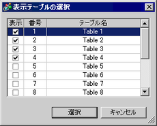 文字列テーブル設定画面に表示するテーブルを指定します。文字列テーブルの登録に必要なテーブルにチェックを入れます。