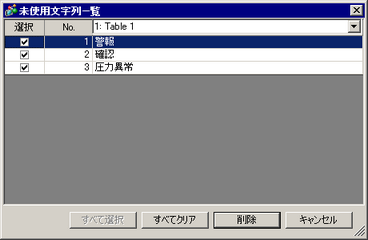 をクリックして[未使用文字列一覧]ダイアログボックスを表示します。