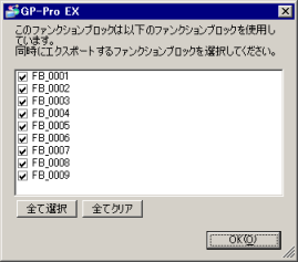 ネスト構造のFBをパッケージへドラッグ&ドロップすると、命令として使っているFBの一覧がダイアログボックスで表示されます。同じパッケージに含めたいFBにはチェックを入れ[OK]をクリックします。