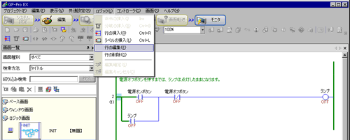 オンラインエディットでは、1行単位で編集を行います。[ロジック]メニューの[行の編集]をクリックすることで指定行が編集可能になります。[編集確定]をクリックすると、編集したロジックプログラムが表示器へ転送されます。