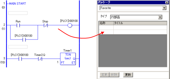 ファンクションブロックを含んだ行をパッケージへ登録しても、ファンクションブロックは一緒に登録されません。