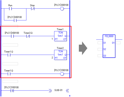 作成済みのロジックプログラムの一部をファンクションブロック(FB)として登録するには次の流れで作業します。