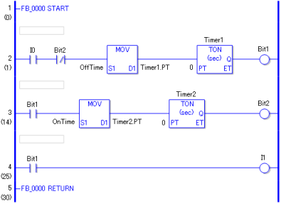 ファンクションブロックのロジックプログラムを次のように修正します。