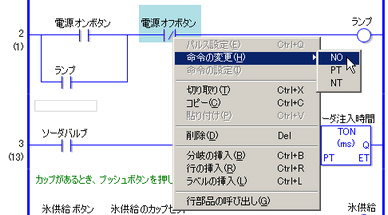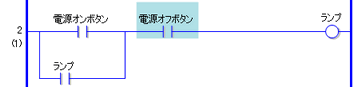 ここでは、例として2行めのNC命令(b接点)をNO命令(a接点)に変更します。