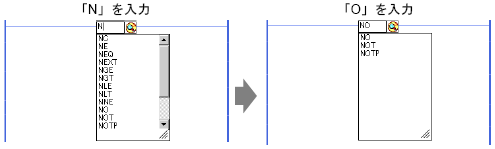 テキストボックスに直接命令を入力して挿入することもできます。1文字入力するごとに、入力した文字列の命令候補が表示されます。