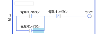 ここでは、例としてクリップボードにコピーしている下記のNO命令(a接点)を3行目の分岐に貼り付けます。