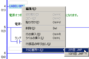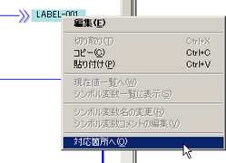 JMP命令を右クリックし、[対応箇所へ(O)]を選択すると、対応するラベルにカーソルが移動します。