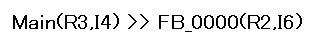 表示中のFBがどこで使われているかが表示されます。Rは行数を、Iは左から何個目の命令かを表します。表示されているロジック名称をダブルクリックすると、選択したFBまたはロジック画面に表示が切り替わります。