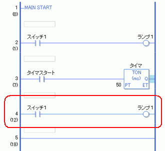 行を貼り付けたときは、その行の命令に割り付けられているオペランドや行コメントもそのまま貼り付けられます。目的に合わせて行を編集してください。