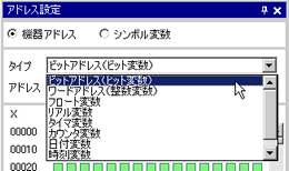 [機器アドレス]を選択し、[タイプ]から[ビットアドレス(ビット変数)]または[ワードアドレス(整数変数)]を選択します。