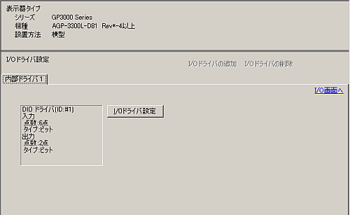 機種設定でAGP-XXXXX-D81を選択します。自動的にDIOドライバが設定されます。