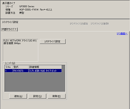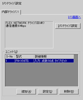 現在設定されているI/Oユニットを選択し、[設定]をクリックします。