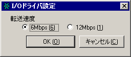 [I/Oドライバ設定]をクリックすると、次のダイアログボックスが表示されます。[転送速度]を選択し、[OK]をクリックします。