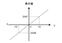 電圧出力設定によるアナログ値は、下図のように-2048~2047の範囲で表示されます。
