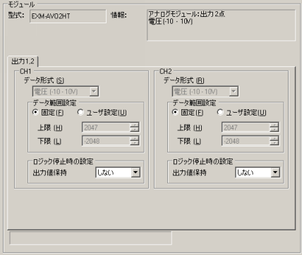電圧出力設定によるアナログ値は、[上限]と[下限]を設定し、この範囲で表示されます。設定可能な値は以下のようになります。