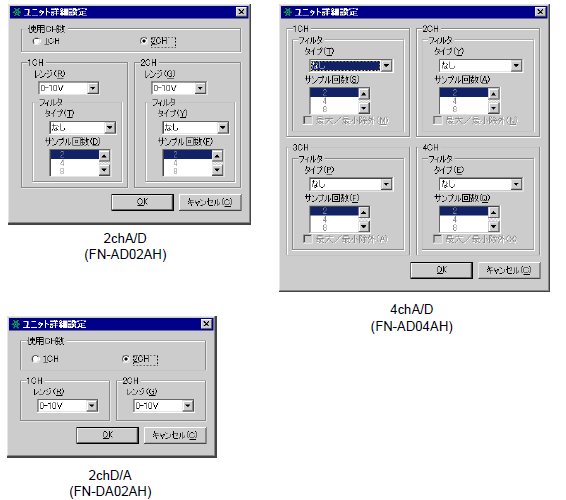 4chアナログユニットのレンジ(分解能)はユニット本体で設定します。