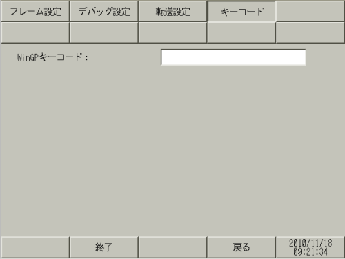 WinGPキーコード枠をタッチし、WinGPのキーコードを入力します。すでにWinGPキーコードが設定されている場合、キーコードは入力できません。