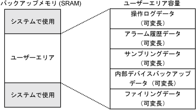 GP-4100シリーズにはバックアップメモリ(SRAM)はありませんが、内部メモリの一部をバックアップ領域として使用します。この領域を本書では便宜上「仮想バックアップメモリ」と呼びます。