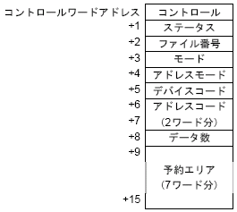 指定した[コントロールワードアドレス]から連続16ワード分を使用して、転送するデータや転送先アドレスを設定します。