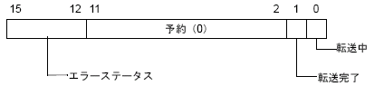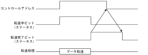 転送が正常に完了した場合は、転送中ビットがOFFし、転送完了ビット(ステータスのビット1)がONします。