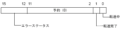 転送が正常に完了した場合は、転送中ビットがOFFし、転送完了ビット(ステータスのビット1)がONします。