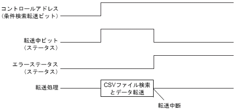 転送中ビットON時には、CSVファイル検索時間も含まれます。そのため、転送中ビットがONしている間は、外部ストレージの[file]フォルダへはアクセスしないでください。