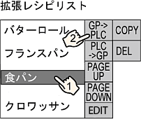 拡張レシピリストでレシピを選択し、転送用スイッチをタッチします。