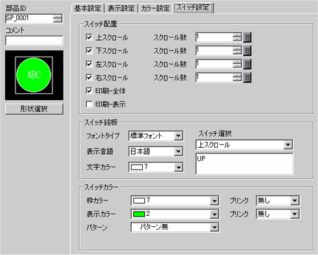 CSV表示器に付属する操作用スイッチ(スクロールスイッチ、印刷スイッチ)を配置設定します。