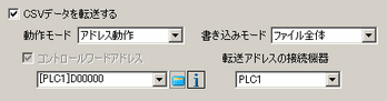 接続機器からCSVデータの転送を操作する(自動転送する)かどうかを指定し、指定した場合は転送をコントロールするアドレスを設定します。