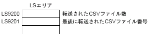 転送処理が終了した際、ステータスへの反映と同時に表示器内部デバイスの特殊エリアLS9200、LS9201に転送したファイル数と転送最終ファイル番号が書き込まれます。(特殊エリアは読み込み専用です。)