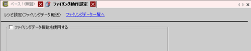 [共通設定(R)]メニューから[レシピ設定(R)]-[ファイリングデータ転送(動作設定)(A)]を選択するか、