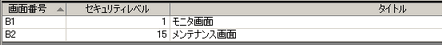 モニタ画面(画面番号 : B1)の[セキュリティレベル]を「1」、メンテナンス画面(画面番号 : B2)[セキュリティレベル]を「15」に設定して完了です。