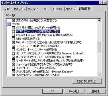 [HTTPエラーメッセージを簡易表示する]のチェックをはずす。