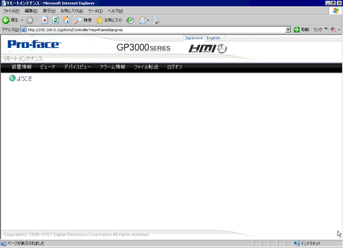 表示器のWeb Serverに接続され次のような[ようこそ]画面が表示されます。