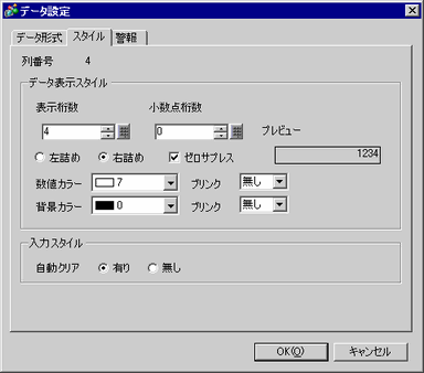 点滅表示の有無および点滅の速さを指定します。[数値カラー]、[背景カラー]それぞれにブリンクを設定できます。
