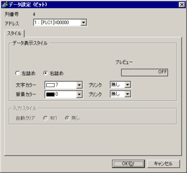 [アドレス設定]タブで[データ形式の混在]を設定した場合に、プレビューエリアでデータ形式が[ビット]のデータ列を選択して[列の詳細設定]をクリックすると、次のダイアログボックスが表示されます。