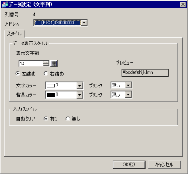 データの表示文字数を[項目名(横)/文字列 文字数]で設定した文字数以内で設定します。