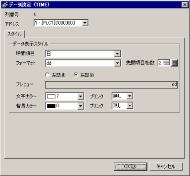 [データ形式]で[TIME]を選択した場合に表示されます。