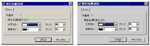 点滅表示の有無および点滅の速さを指定します。[文字カラー]、[背景カラー]それぞれにブリンクを設定できます。
