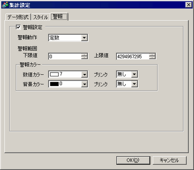 警報表示を行う(警報範囲を超えると集計データの色を変えて表示する)かどうかを指定します。