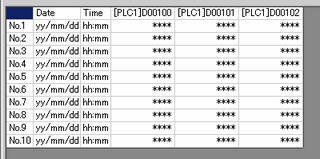 [動作設定]タブの拡張設定で[指定回数終了時に古いデータから上書きする]を指定している場合、データ行は1行のみ表示されます。指定していない場合は、[回数]分のデータ行が表示されます。