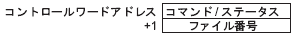 コマンドを書き込み、その結果(ステータス)が反映される領域と、ファイル番号(「SA*****.csv」の*****部分)を指定する領域の連続2ワード分を自動的に使用します。ファイル番号の設定範囲は0~65535です。