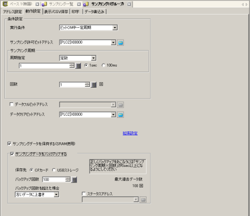 設定したアドレスは50msごとに監視されます。アドレスの値が変更されたことを確認してからサンプリング周期が変更されます。そのためサンプリング周期の変更までに遅延が発生する可能性があります。また[サンプリング許可ビットアドレス]をONにしたときもサンプリング周期が変更されます。