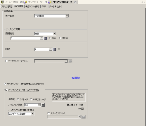 サンプリング動作の実行条件を選択します。[一定周期]を選択してください。