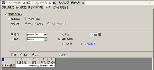印字を行うかどうかを指定します。サンプリングデータを印字する場合は必ずチェックを入れ、印字フォーマットを設定してください。