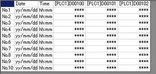 日付列、時刻列の項目名にはそれぞれ「Date」、「Time」が、データ列にはアドレスが印字されます。