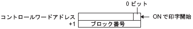 ワードアドレスは、印字開始をコントロールする領域とブロック番号を指定する領域の連続2ワード分を自動的に使用します。ブロック番号を指定してから印字を開始してください。