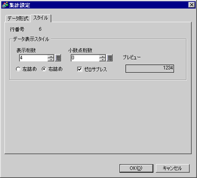 集計データの小数点以下の表示桁数を、0~[表示桁数]-1の範囲で設定します。