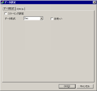 [スケーリング設定]を指定し[データ形式]が[Dec]の場合のみ、表示データに符号を付加するかどうかを指定します。[データ形式]が[Float]の場合は指定あり固定です。