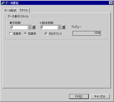 データの小数点以下の表示桁数を、0~[表示桁数]-1の範囲で設定します。